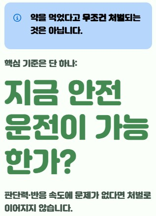 이처럼 일상적으로 복용하는 약도 상황에 따라 운전에 영향을 줄 수 있습니다. 따라서 단순히 불법 여부가 아니라 신체 반응을 기준으로 판단해야 합니다.