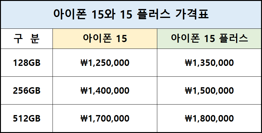 | 아이폰 15 사전 예약 비교표 | ||||